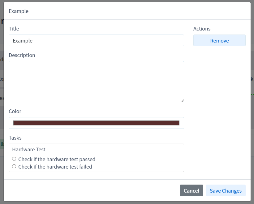 The name of the task is used to identify it for you, the engineers, and the conditions system. The name can be anything you want, in the example (see below) the name is "Hardware Test".