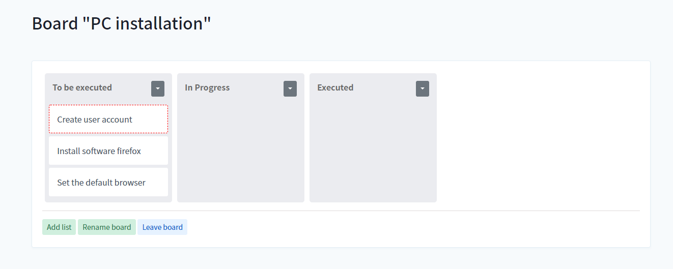 Then you can configure this template to be used for one of your project, and a copy will be made when an engineer executes the software. Or manually creates a board from the engineer dashboard. They can then drag & drop the "To be executed (or any name you like)" items to "Executed" when they are done.